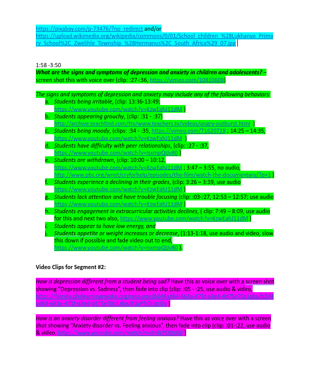 We used color coding to better visualize the structure of the script and ensure it met learning objectives: